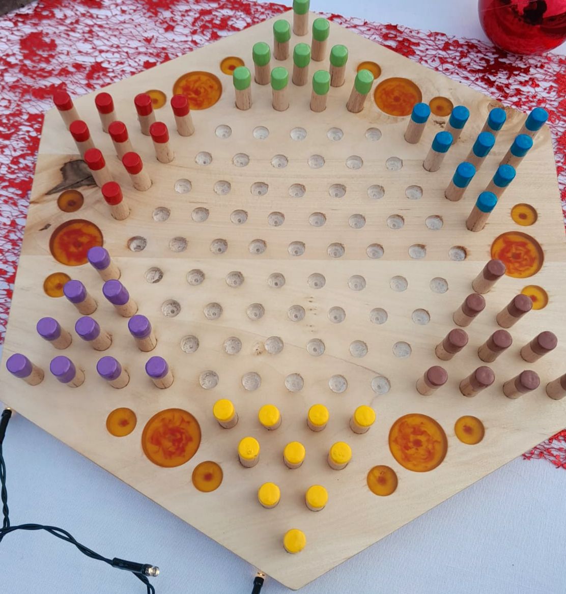 Plus connu sous sa forme en croix, ce jeu est d’origine très ancienne et joué par les romains. Cette version triangulaire n’enlève rien à la complexité du jeu.