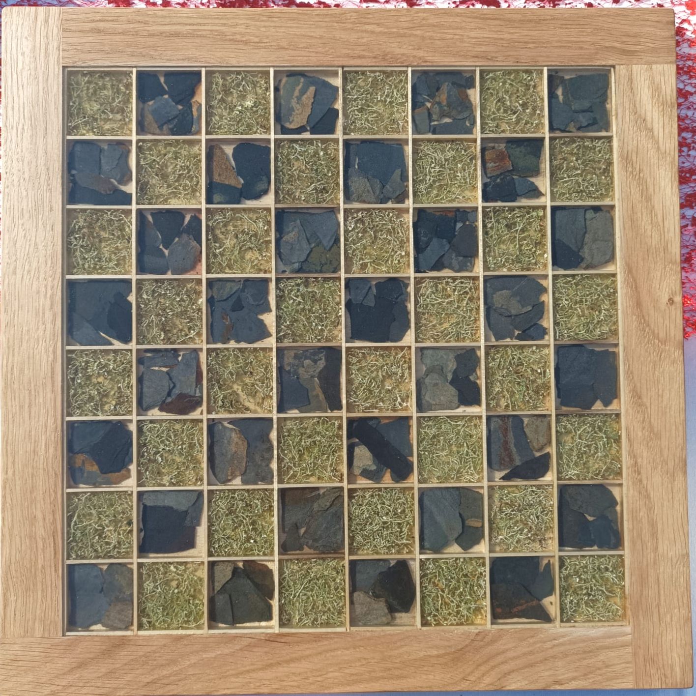Un maître jeu qu’il n’est pas nécessaire de présenter Alliance de différentes essences de bois dans un fin travail d’ébénisterie pour créer les 64 cases qui accueilleront résine pure avec ou sans insertion d’éléments naturels.
