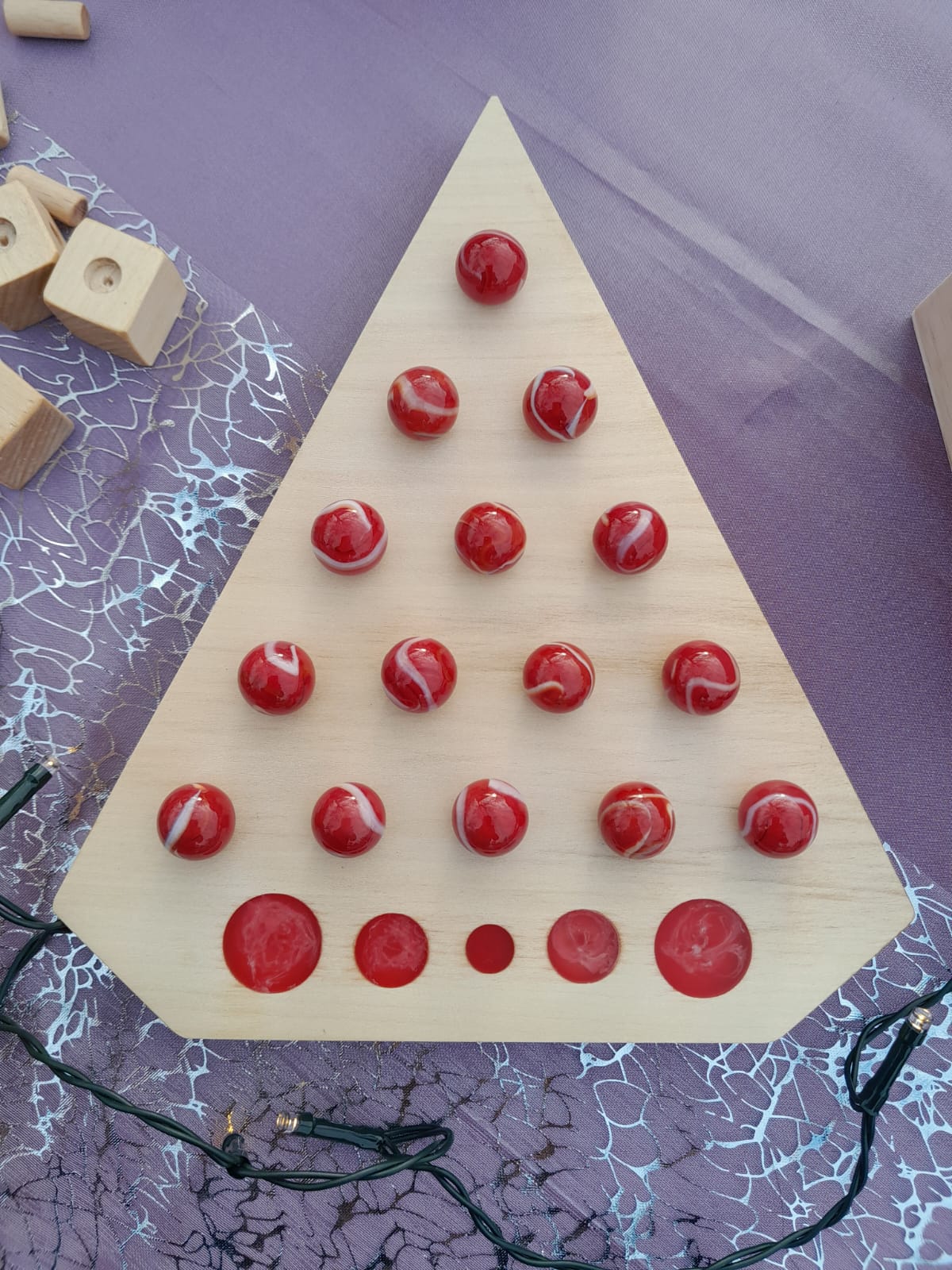 Plus connu sous sa forme en croix, ce jeu est d’origine très ancienne et joué par les romains. Cette version triangulaire n’enlève rien à la complexité du jeu.