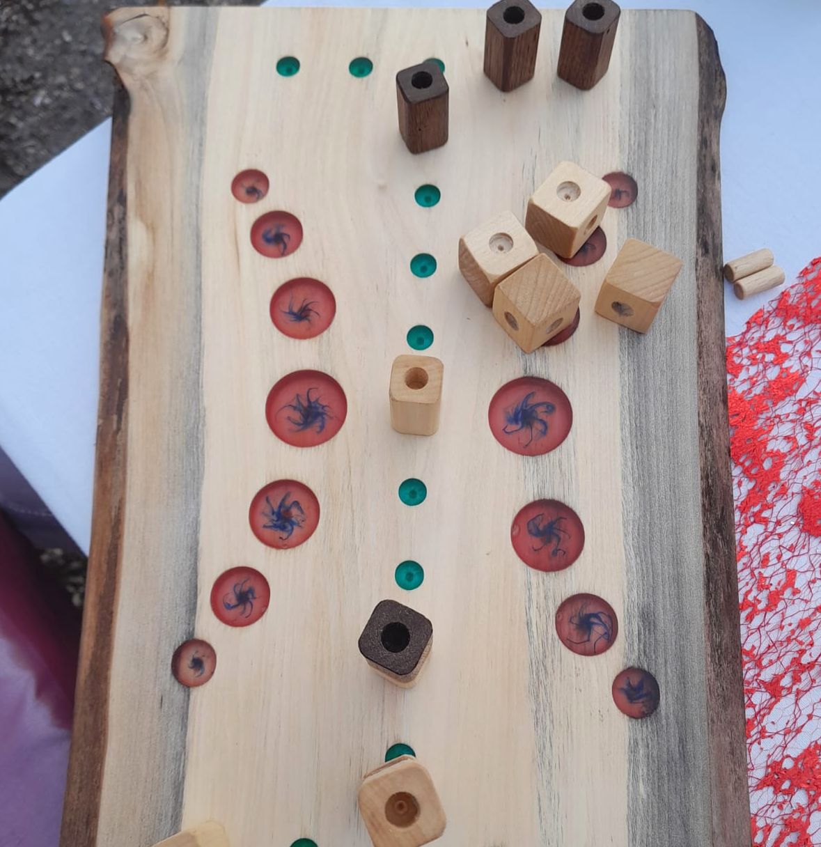 Joué en Afrique du Nord, c’est un jeu de stratégie aux règles simples. La résine vient séparer les cases et mettre en valeur le plateau de jeu.